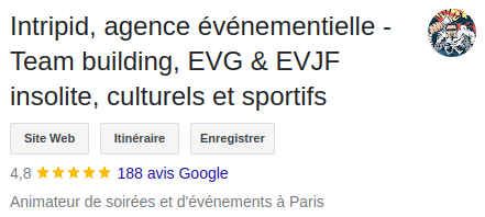 🤯 Ce n'est pas tout ! : Intripid, spécialiste dans l'organisation et l'animation, transforme les lieux en terrains de jeux ! Nous mettons en place des sur mesure pour des d'entreprise sous la forme (qui durent de 2 à 3h). Les Intripid viennent à vous pour vous faire transpirer en vous amusant durant vos ! Ces animations sont idéales si vous organisez une soirée corporate ou pour une journée ludique.