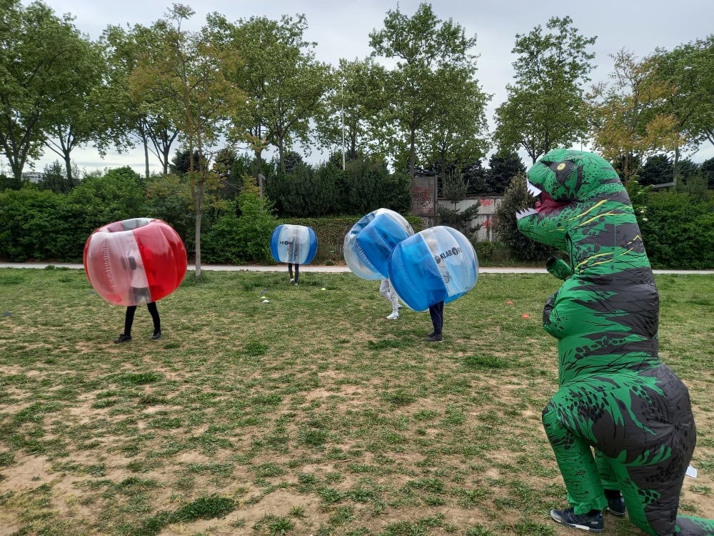 Dans de grosses bulles gonflables, tamponnez vous au maximum, mais n'oubliez pas de jouer au footbal...