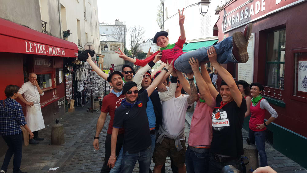 Nous vous attendons pour 2 à 3 heures de pur fun au cœur d’un parcours culturel à Montmartre dont vous reviendrez transformé ! Juste pour vous, un arbitre vous ambiancera pendant toute la durée du parcours et vous servira les consommations incluses dans le tarif. Prenez seulement avec vous une paire de chaussures confortables et votre bonne humeur. Pourquoi ne pas vous déguiser pour une immersion totale ? Pour ce parcours de team building à Montmartre Paris, mieux vaut enfiler une marinière et mettre un béret. N’oubliez pas votre